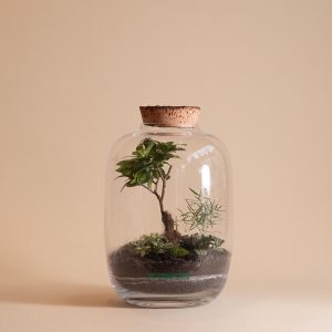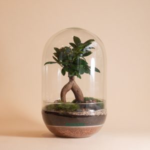Our artisan terrariums are handmade in England. Each terrarium is a natural living ecosystem set in luxury glassware featuring bonsai trees, moss, plant life and skilfully layered gravel, stones and soil. Please note, product contents may vary.