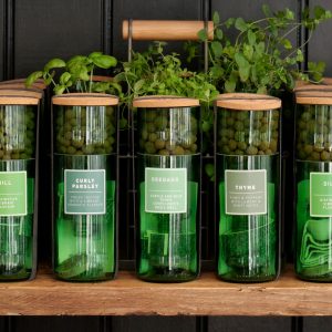 • Environmentally friendly herb growing kit made of reused wine bottles